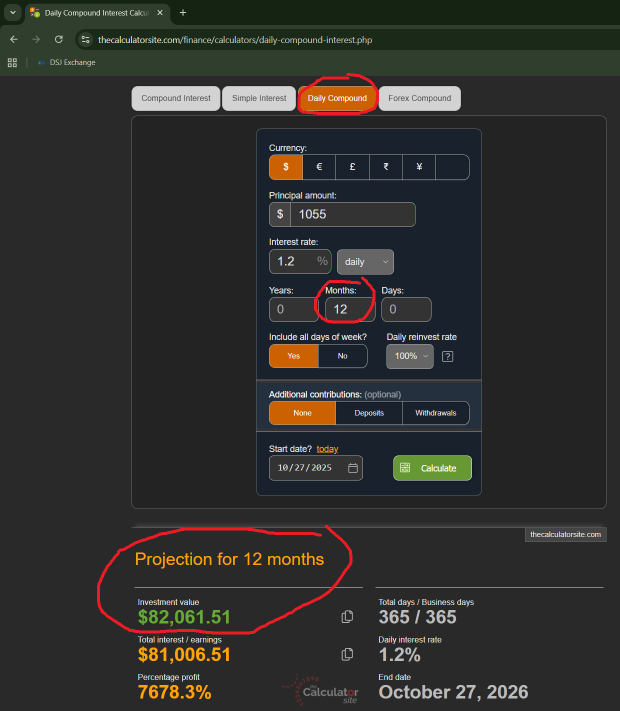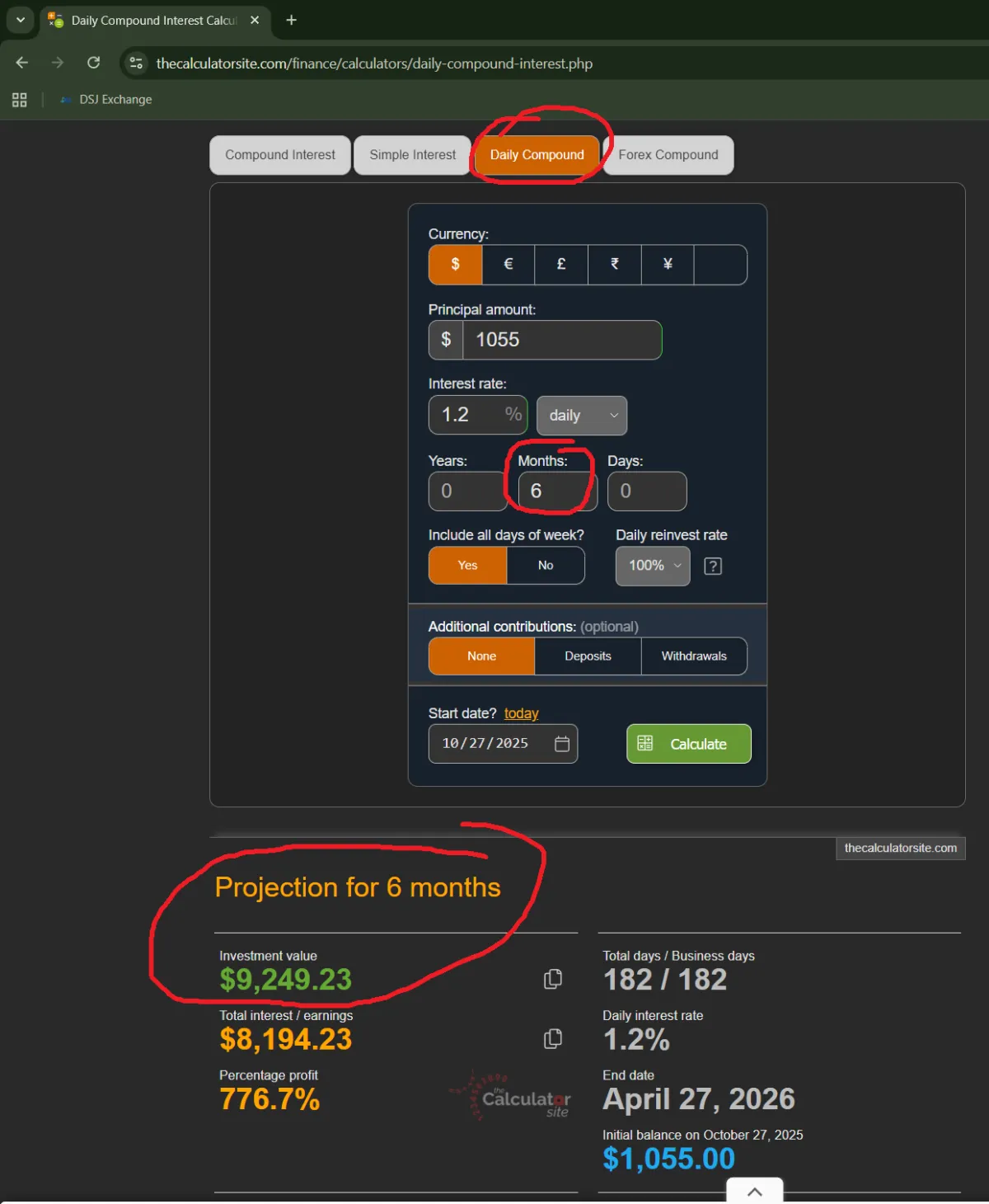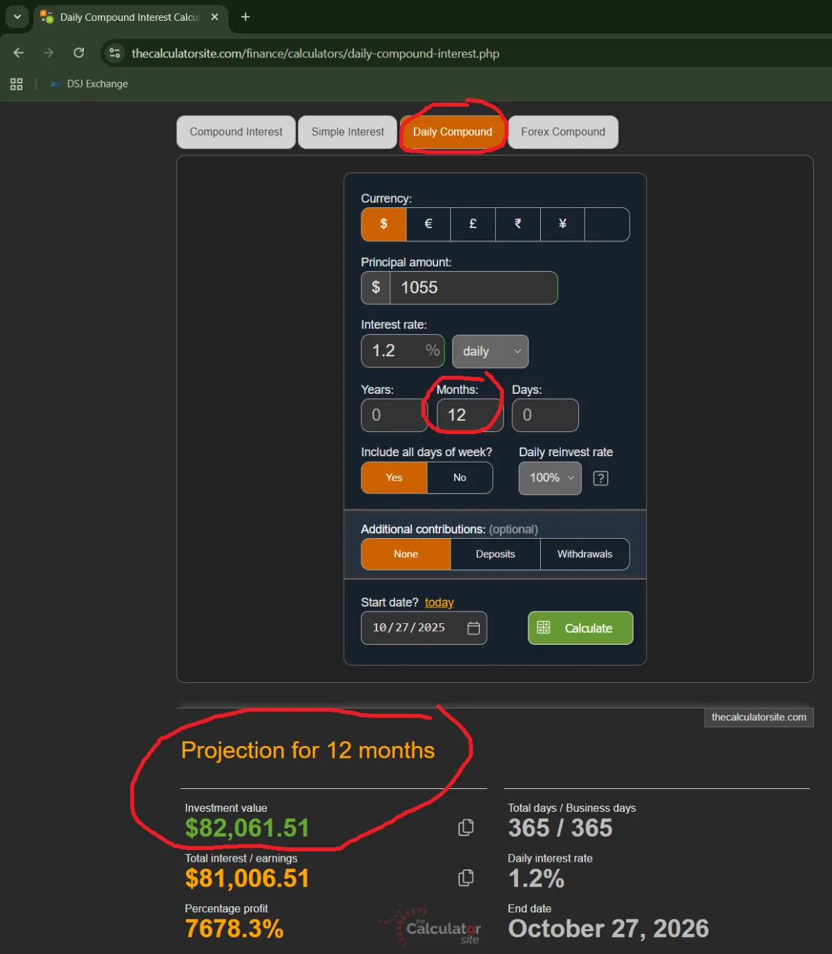 Calculator link: https://www.thecalculatorsite.com/finance/calculators/daily-compound-interest.php