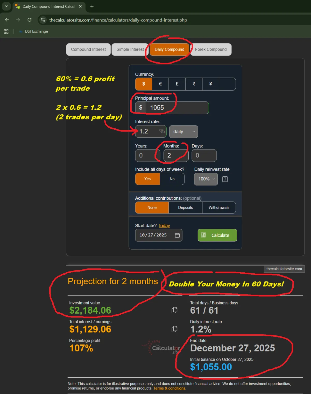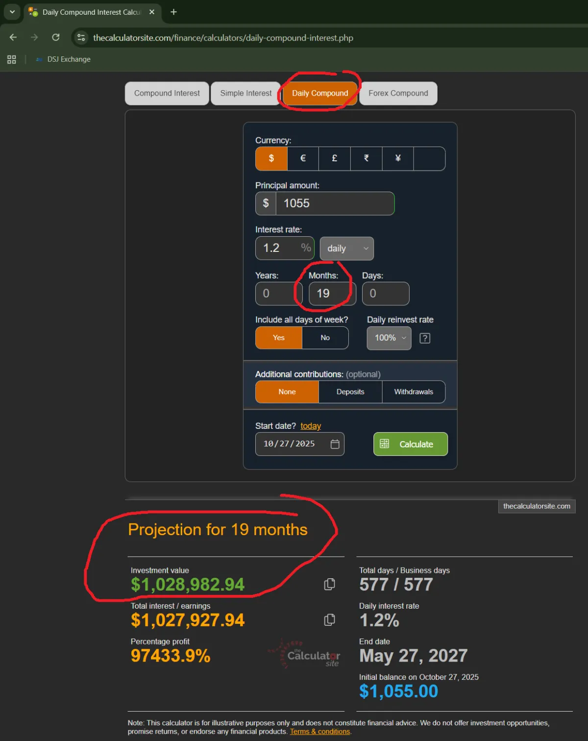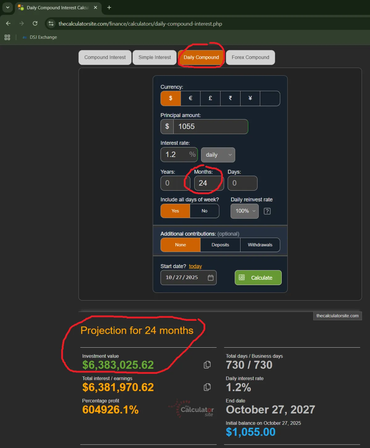 Calculator link: https://www.thecalculatorsite.com/finance/calculators/daily-compound-interest.php